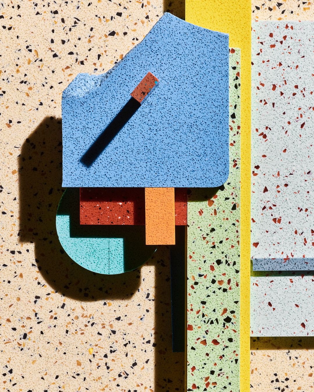 En el caso de las baldosas y placas, el material presenta un marcado carácter volumétrico, con variaciones controladas en textura y composición según el acabado. La formulación puede ajustarse mediante distintos porcentajes de agregados o la incorporación de materiales reciclados, como vidrio, permitiendo modular tanto el comportamiento técnico como la expresión material de la superficie.