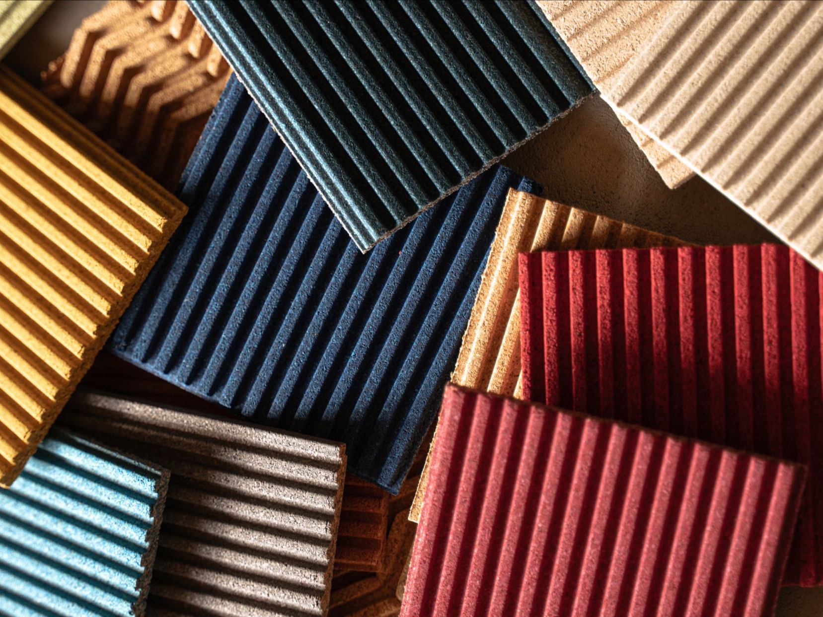 Los sistemas de revestimiento de Muratto parten del uso de corcho natural reciclado, transformado mediante procesos de trituración, prensado y conformado controlado. Este enfoque permite convertir un material de origen natural en un sistema técnico estable, adecuado para aplicaciones arquitectónicas donde el peso reducido y el acondicionamiento acústico son determinantes.